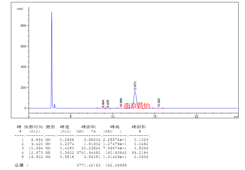 非市場面積歸一98%,我司HPLC>99%,外標法檢測,質量高于SIGMA.且可大量持續供應。