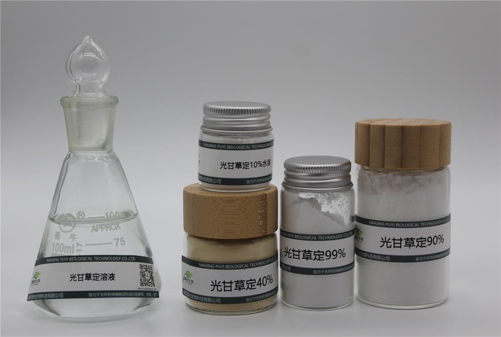 光甘草定是從光果甘草(Glycyrrhiza glabra L)的根中提取得到的,,常用作高端的護膚原料,在世界化妝品界,更被美譽為“美白黃金”。